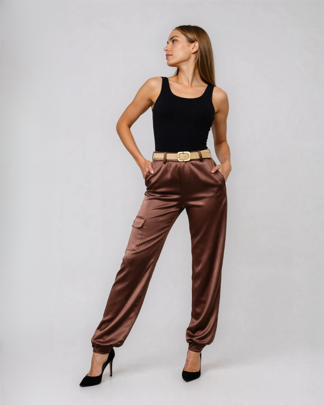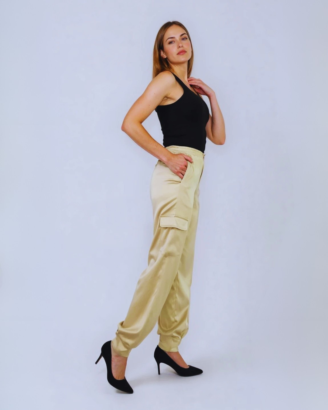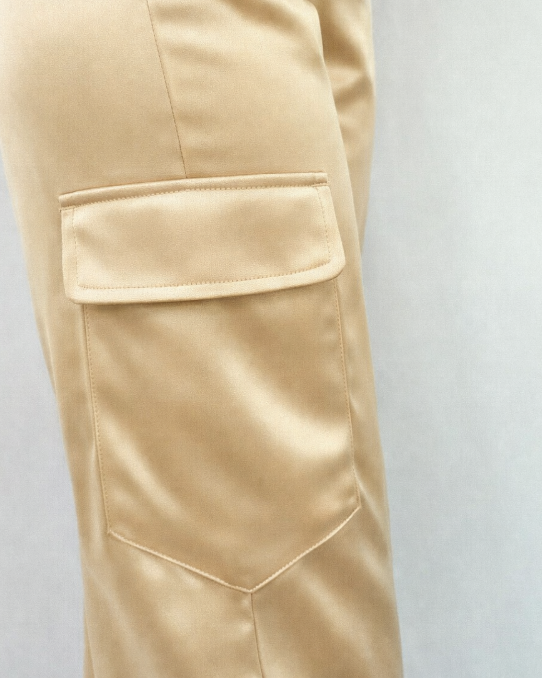 The Blair Satin Cargo Joggers are designed to bring a refined edge to relaxed dressing. Crafted from a weighty but soft, fluid satin, they drape beautifully while still holding their shape — giving you that perfect balance of comfort and structure.