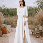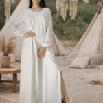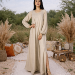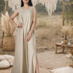 The Dune Dress carries a soft bohemian spirit—designed for tall women who embrace ease, comfort, and understated beauty. With its relaxed silhouette and fluid drape, it moves gently with you, creating an effortlessly laid-back feel.